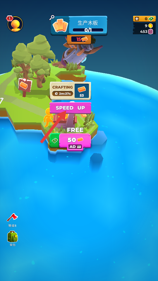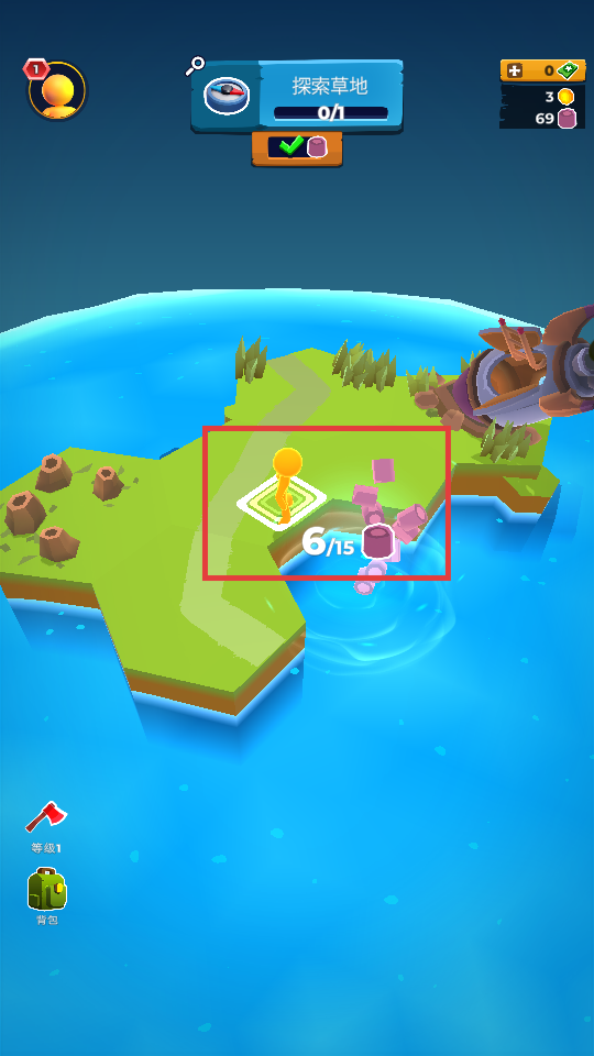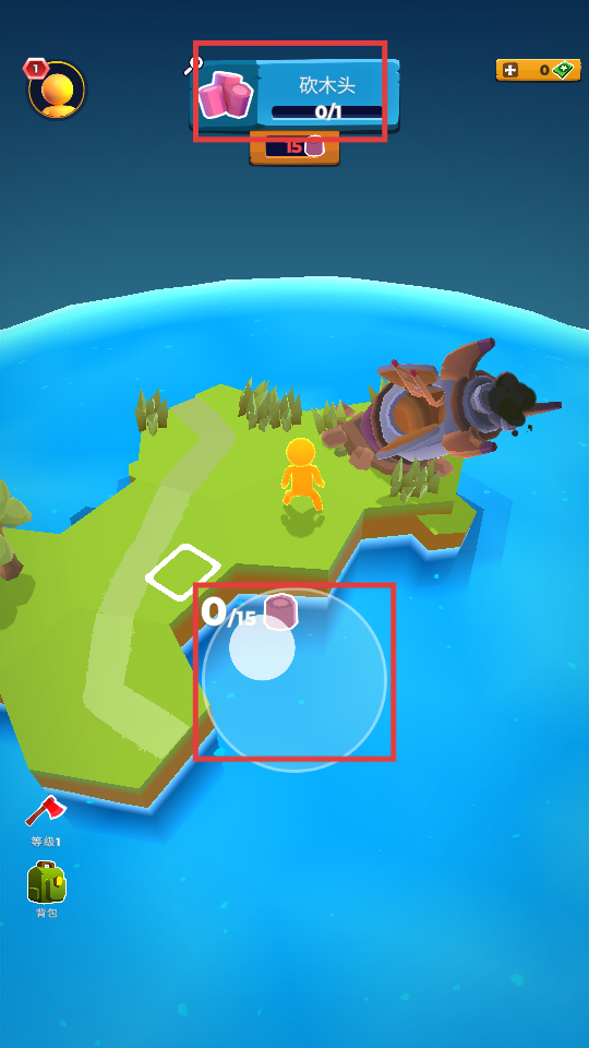 1、完成【砍木头】任务,收集资源,推进游戏进程。