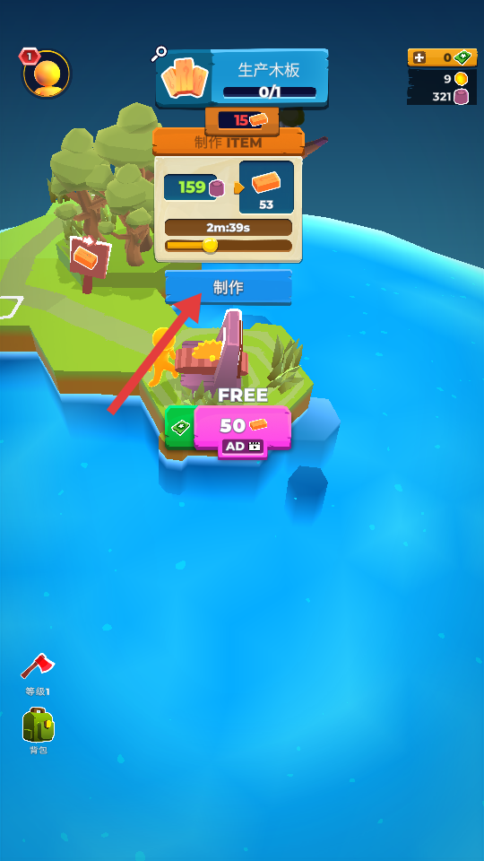 3、点击【制作】,生产木板,完成【生产木板】任务。