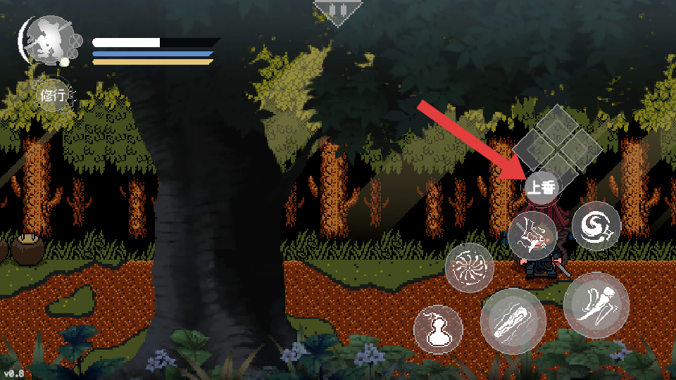 4、将敌人全部消灭后,到达小庙位置点击【上香】进入新场景。