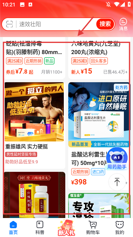 1、打开APP,在首页浏览商品,选择心仪药品,进入商品详情页。