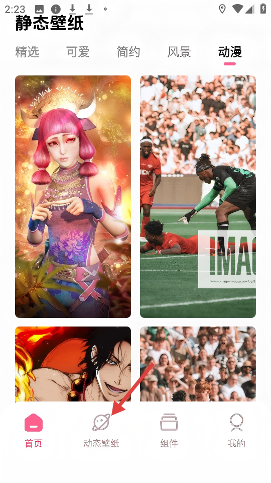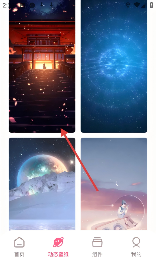 1、在壁纸应用首页,点击底部【动态壁纸】选项,进入动态壁纸列表页面。