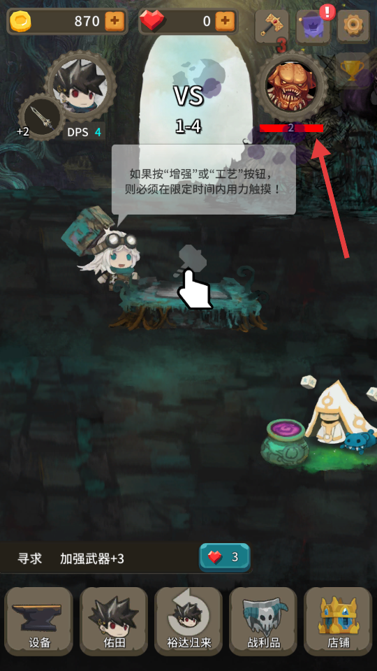 4、进入战斗,操控小男孩使用武器击败敌人。