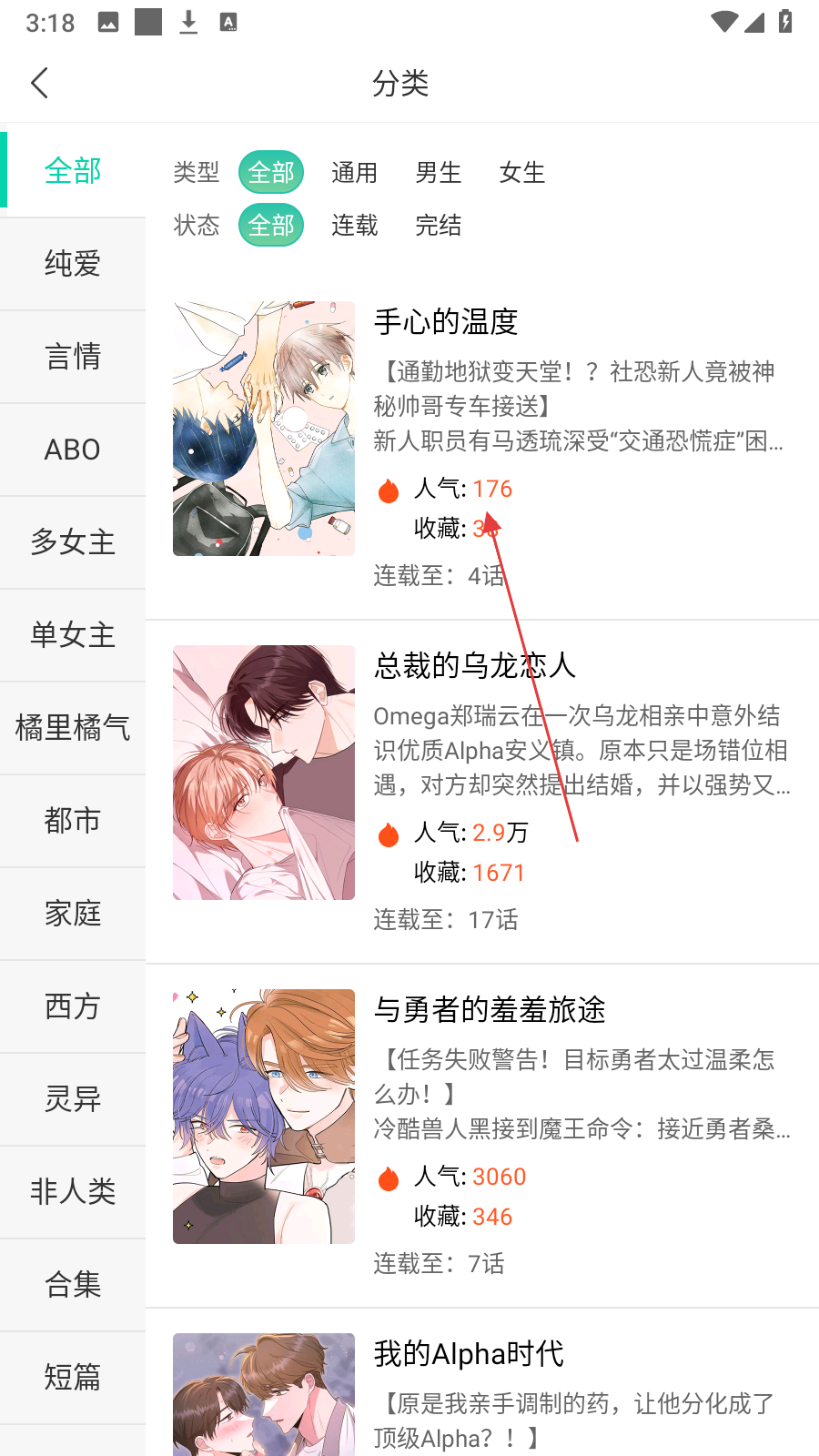 2、在分类页面,选择感兴趣的作品,如【手心的温度】。