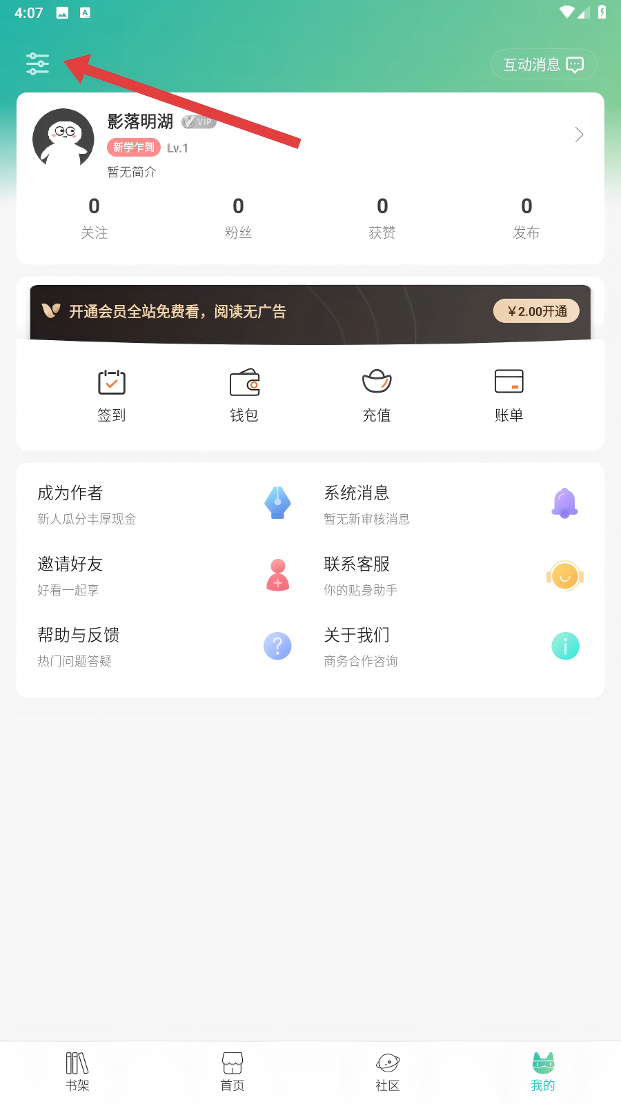 2、在个人主界面,我们点击左上角的设置图标,进入设置界面,离画涯账号注销更近一步哦。