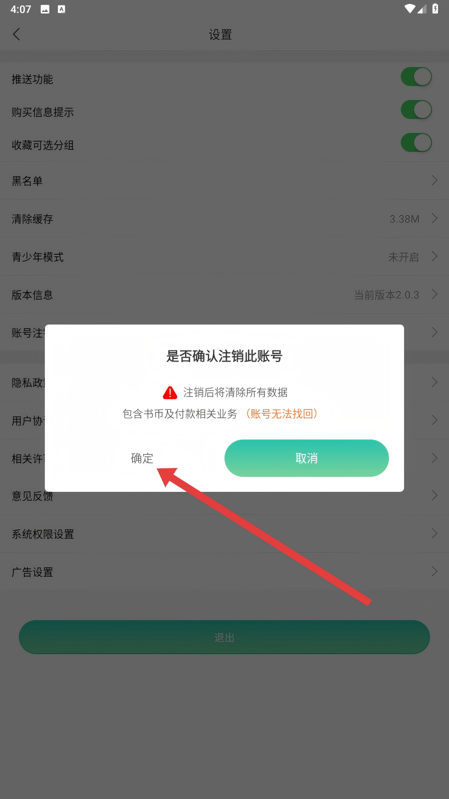 4、在弹出的确认框中点击【确定】,即可完成账号注销,不过要注意注销后数据无法找回哦。
