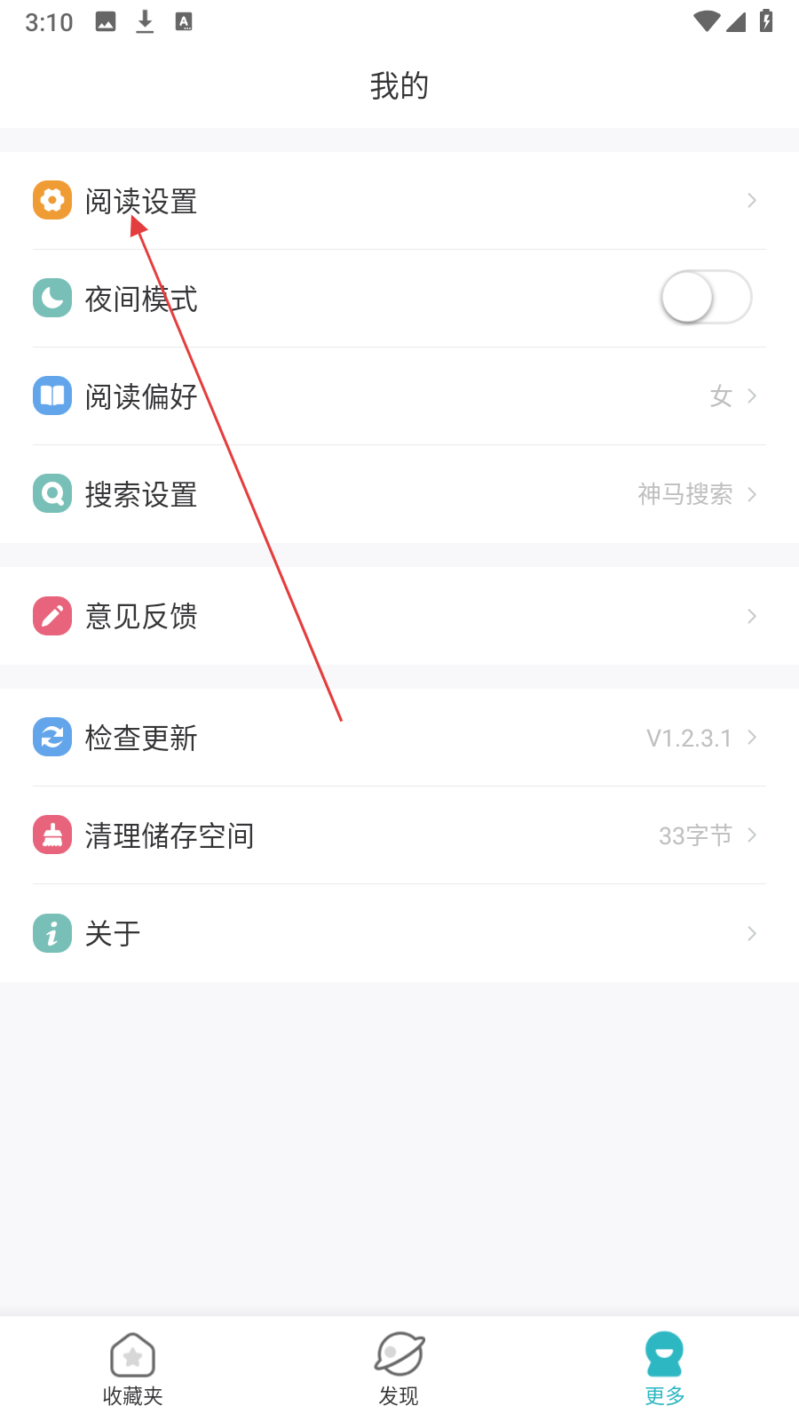2、在更多功能页面,点击【阅读设置】,进入阅读设置页面。