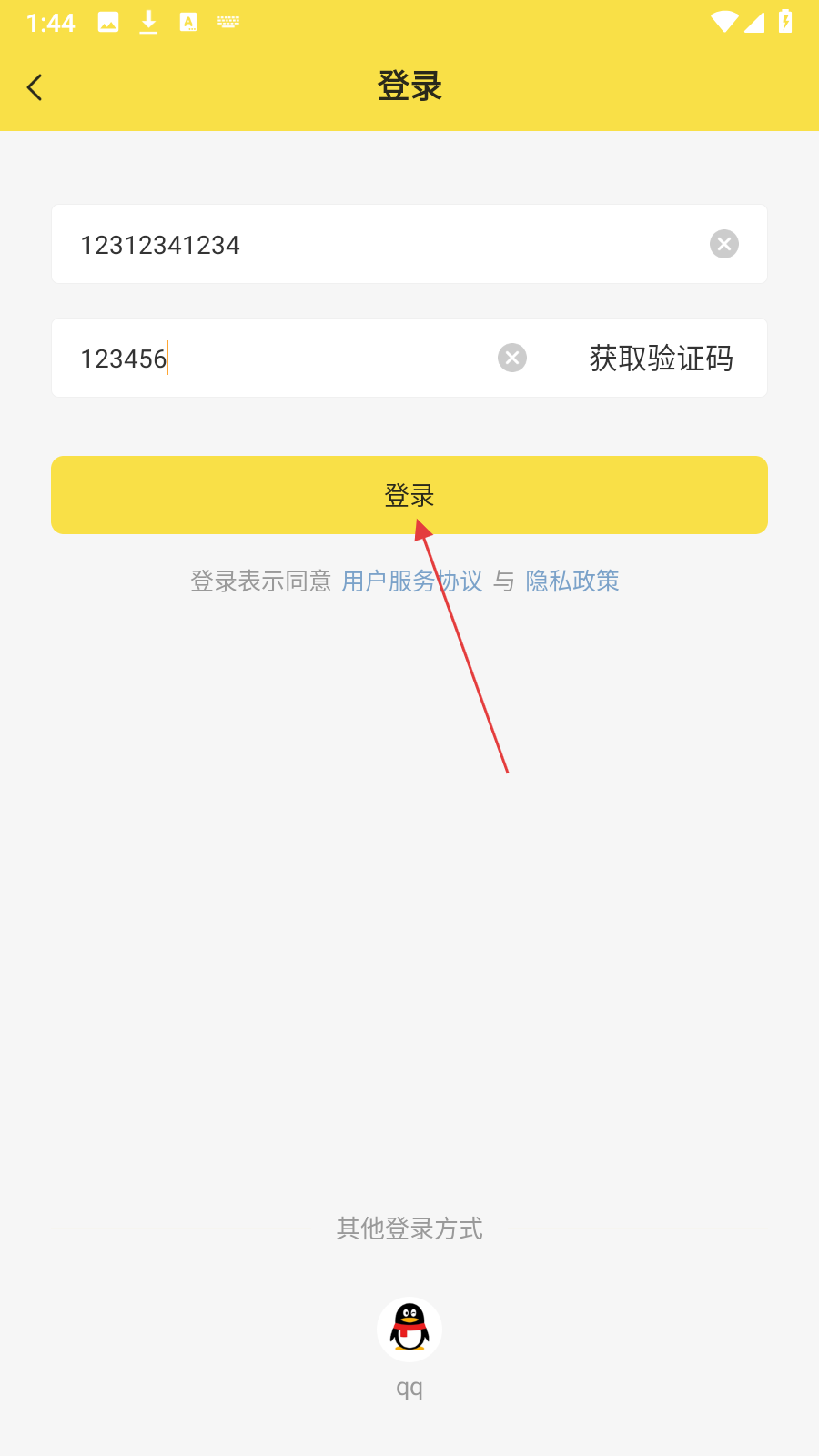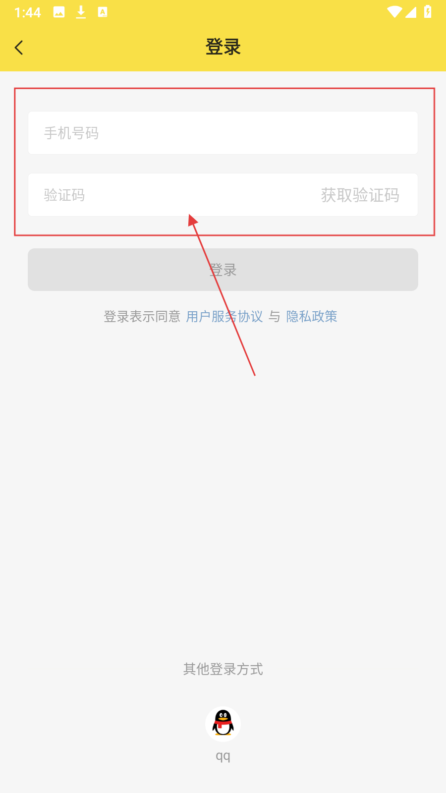 3、在登录页面,输入【手机号码和验证码】,准备登录。