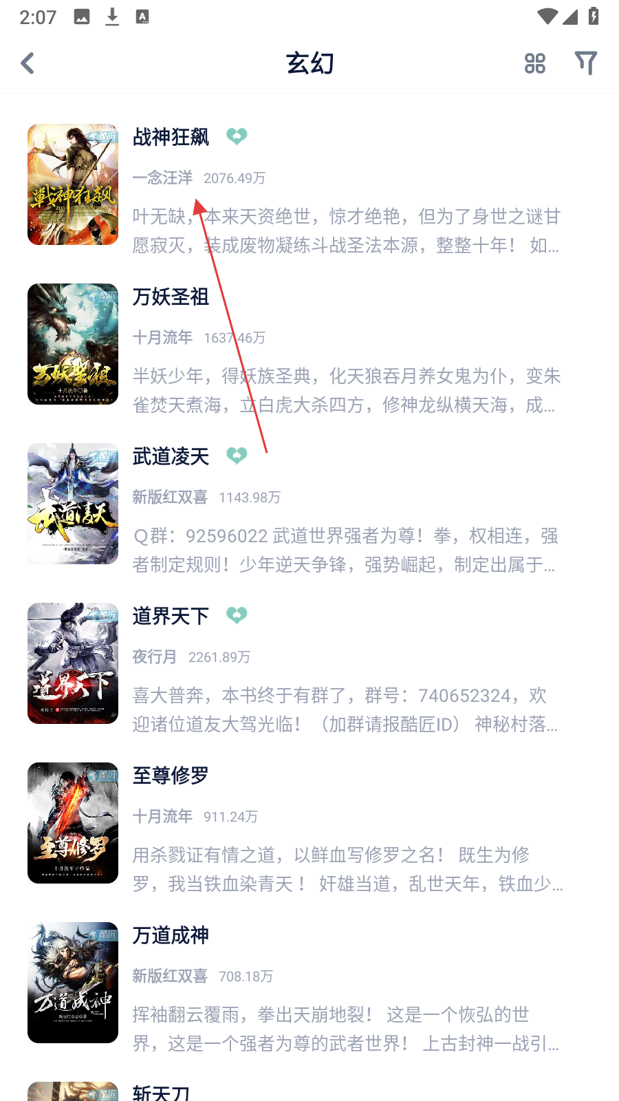 3、在玄幻小说列表页面,点击【想要阅读的小说】,进入小说详情页面。
