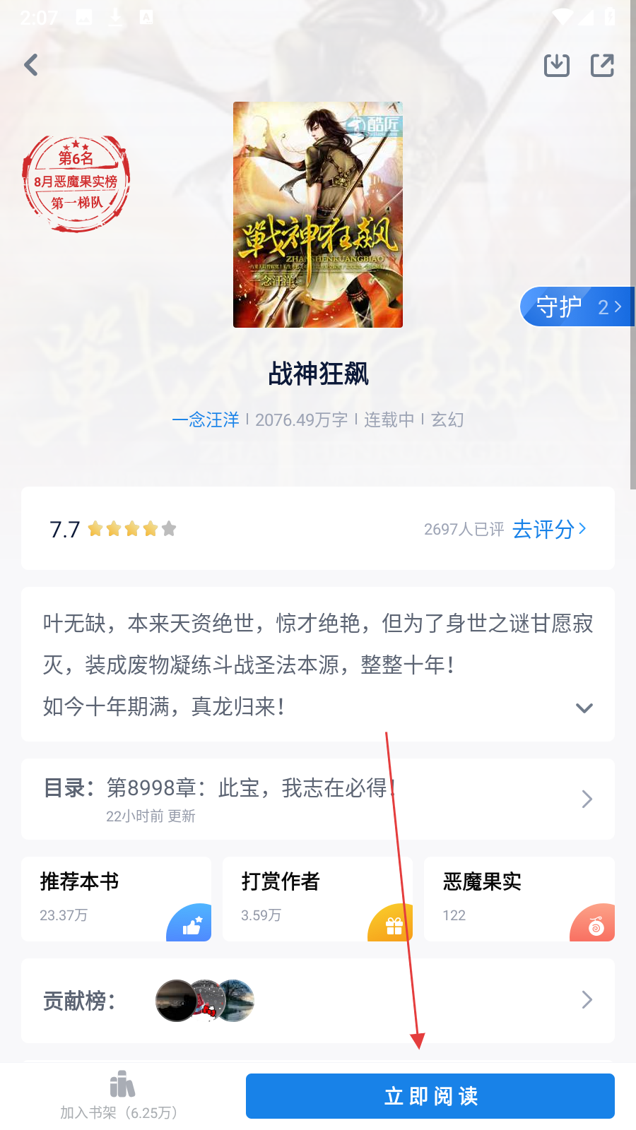4、在小说详情页面,点击【立即阅读】按钮,即可开始阅读小说。
