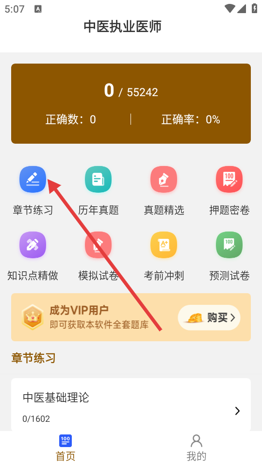 1、在首页,点击【章节练习】,进入章节练习板块。