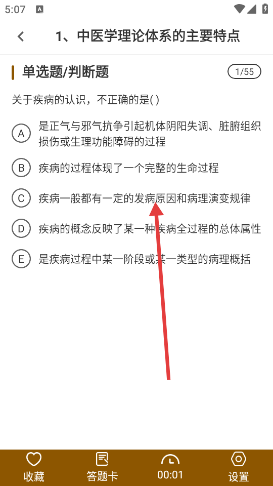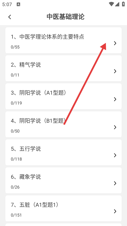 2、选择目标学科,进入具体章节,如“中医学理论体系的主要特点”。