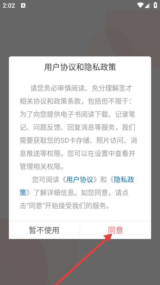 1、首次使用时,仔细阅读【用户协议和隐私政策】,点击【同意】开始使用服务。