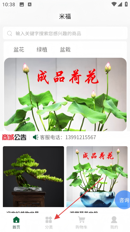 1、点击底部导航栏的【分类】,进入分类商品页面。