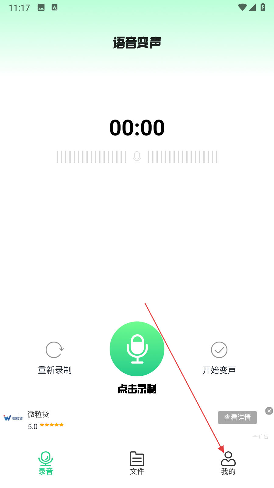 1、在语音变声界面,点击右下角【我的】,进入个人页面。