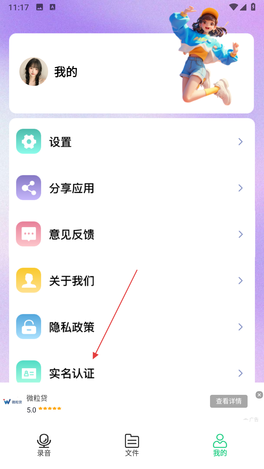 2、在个人页面,找到【实名认证】选项并点击,进入实名认证页面。