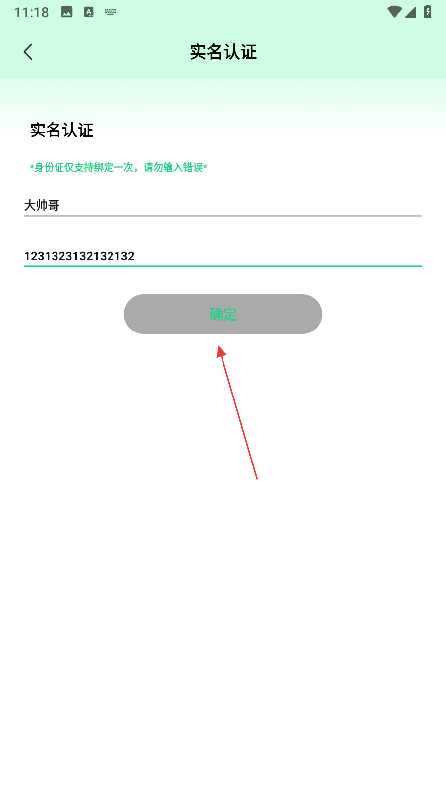 4、信息输入完毕后,点击【确定】按钮,即可完成实名认证操作。