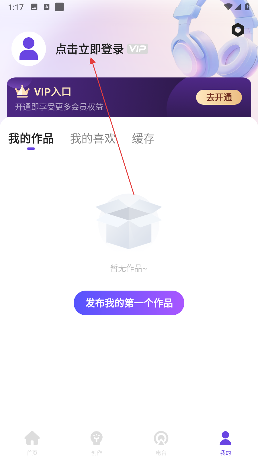2、进入我的页面后,点击上方【点击立即登录】,就可以进行登录操作了。