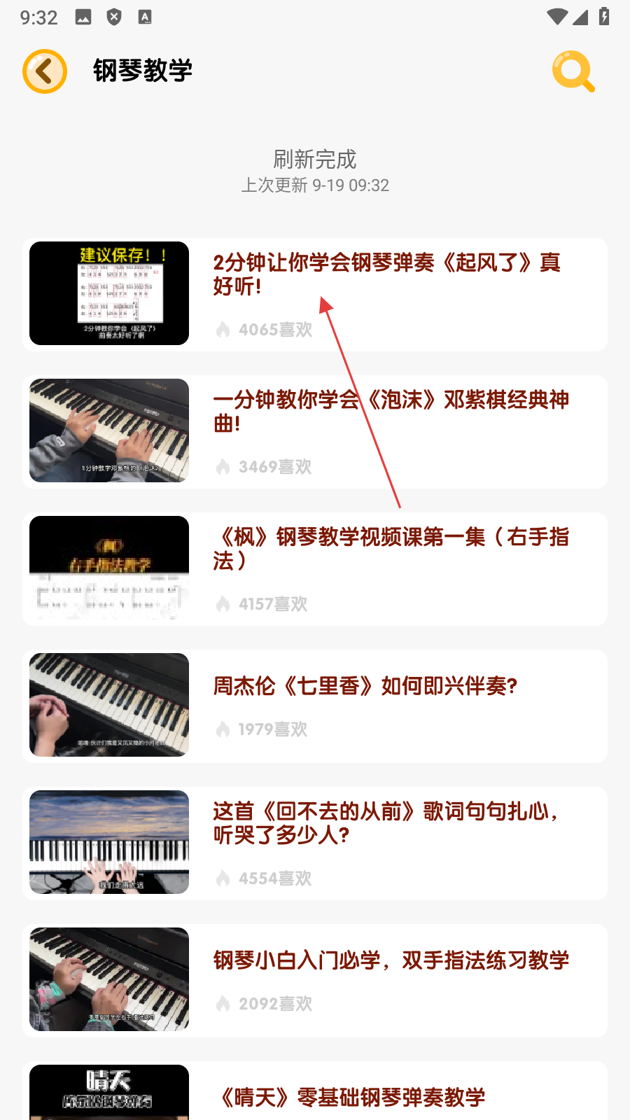 3、在钢琴教学列表里,选择【想要学习的教学视频】。