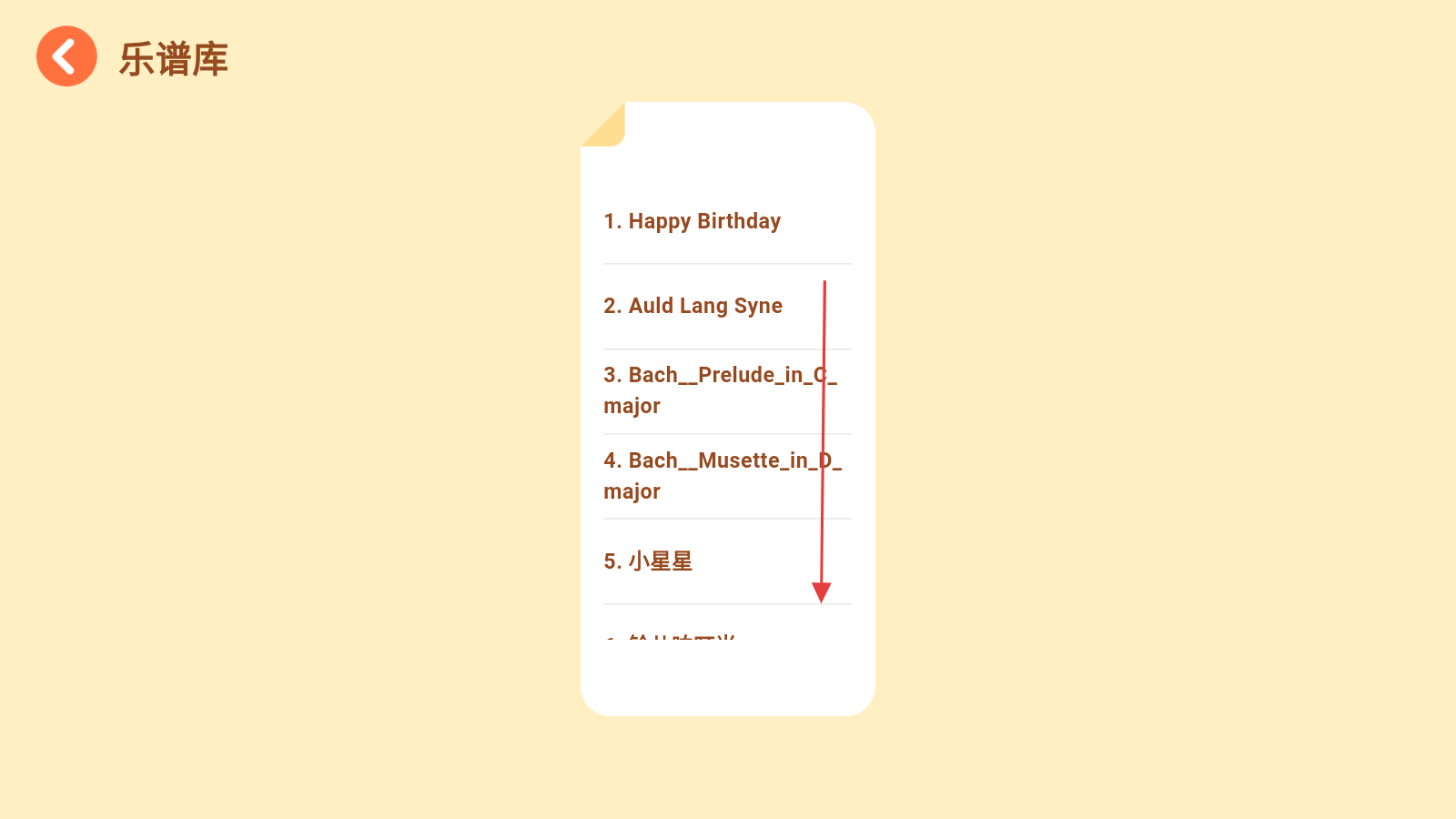 2、进入乐谱库后,向【下滑动屏幕】,浏览更多乐谱选项。
