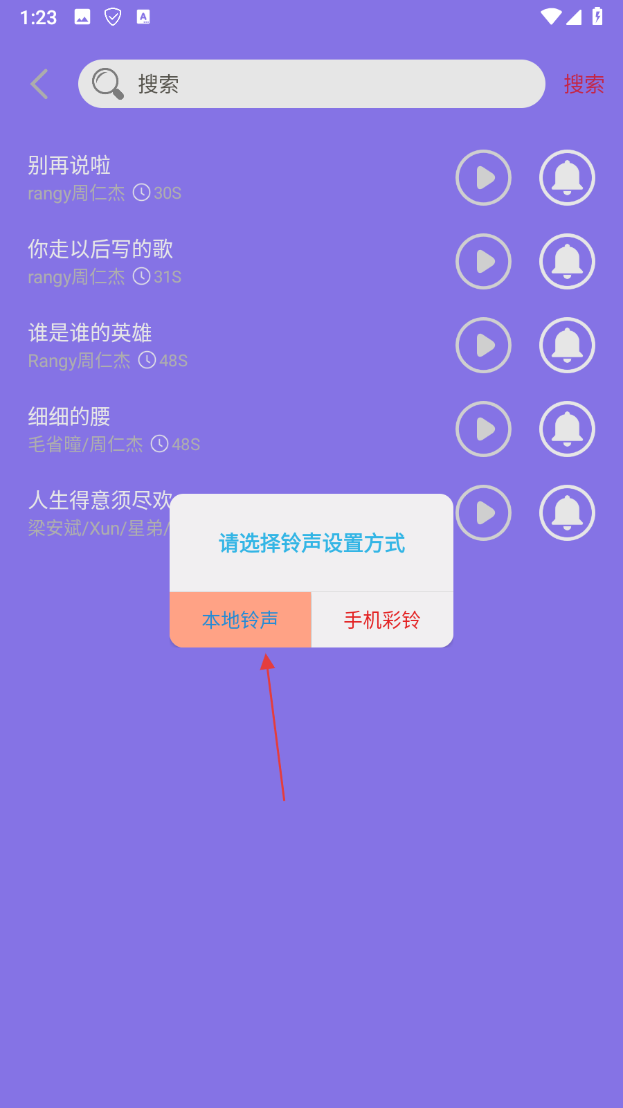 4、在弹出的【请选择铃声设置方式】弹窗中,点击【本地铃声】选项,即可将该铃声设为本地铃声。