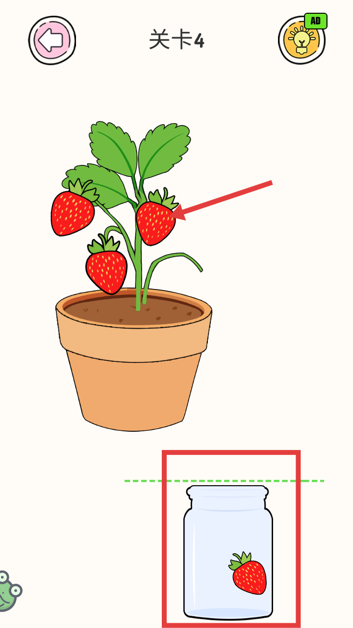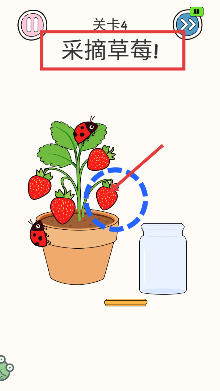 2、在【关卡4采摘草莓!】中,采摘箭头指向的草莓。