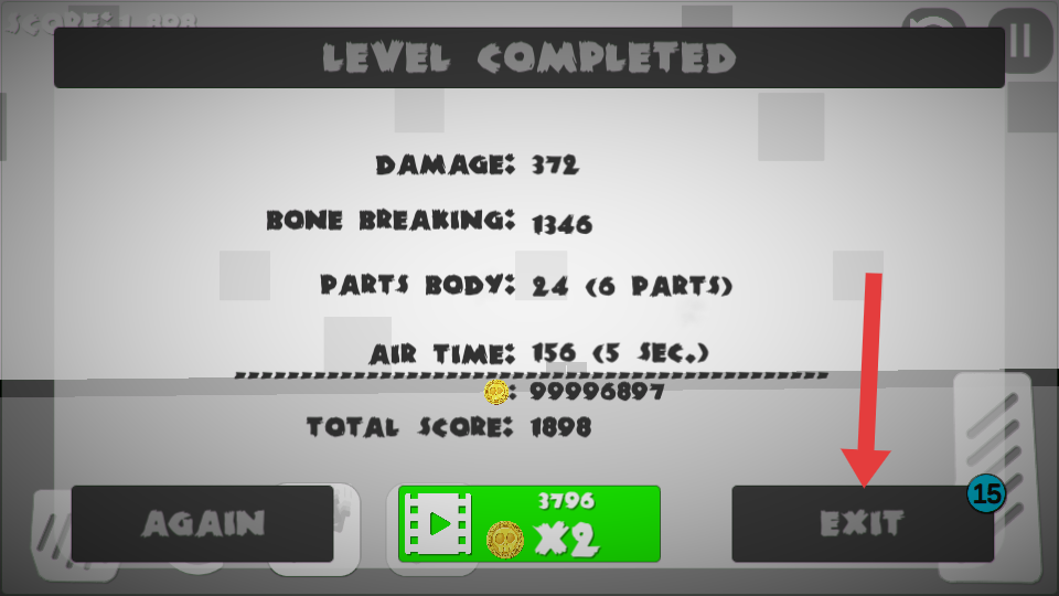 4、关卡完成后,点击【EXIT】可退出或继续挑战,内置菜单助力不断刷新游戏记录。