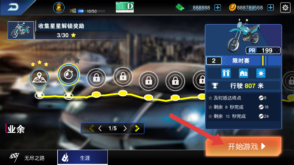 1、在生涯模式界面,点击【开始游戏】按钮。