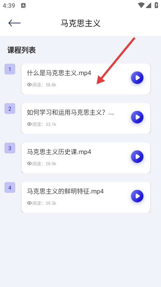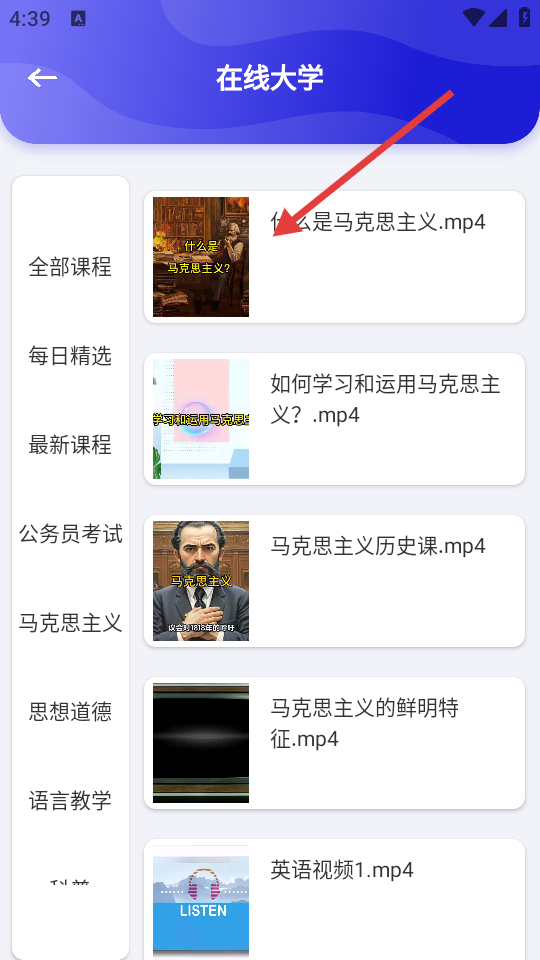 3、进入“马克思主义”课程列表页面后,点击课程选集,点击进入课程详情页。