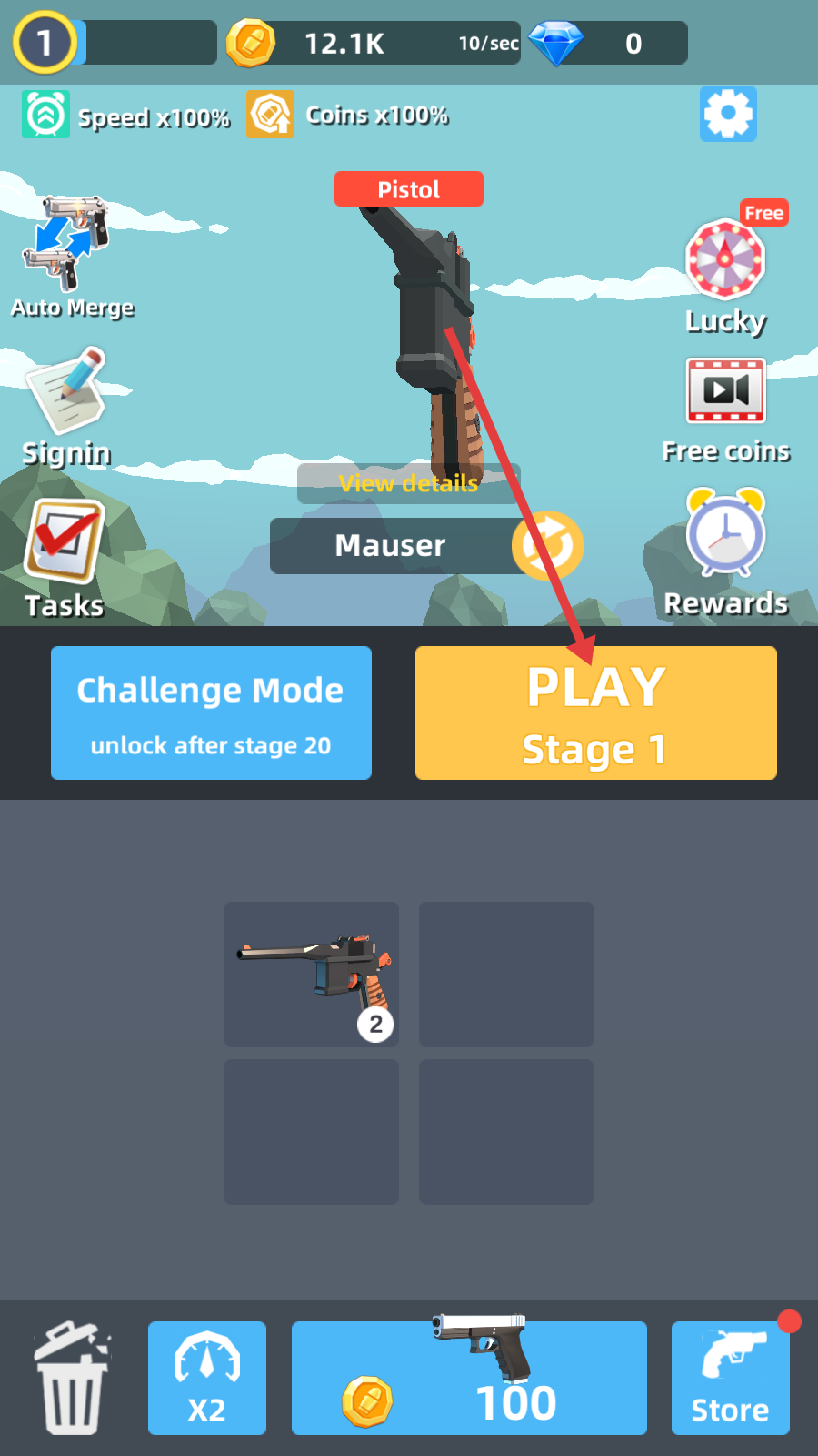 3、合成升级机制:通过将低级枪械合成为更高级别武器,不断提升枪械威力和金币产出效率,形成良性成长循环。