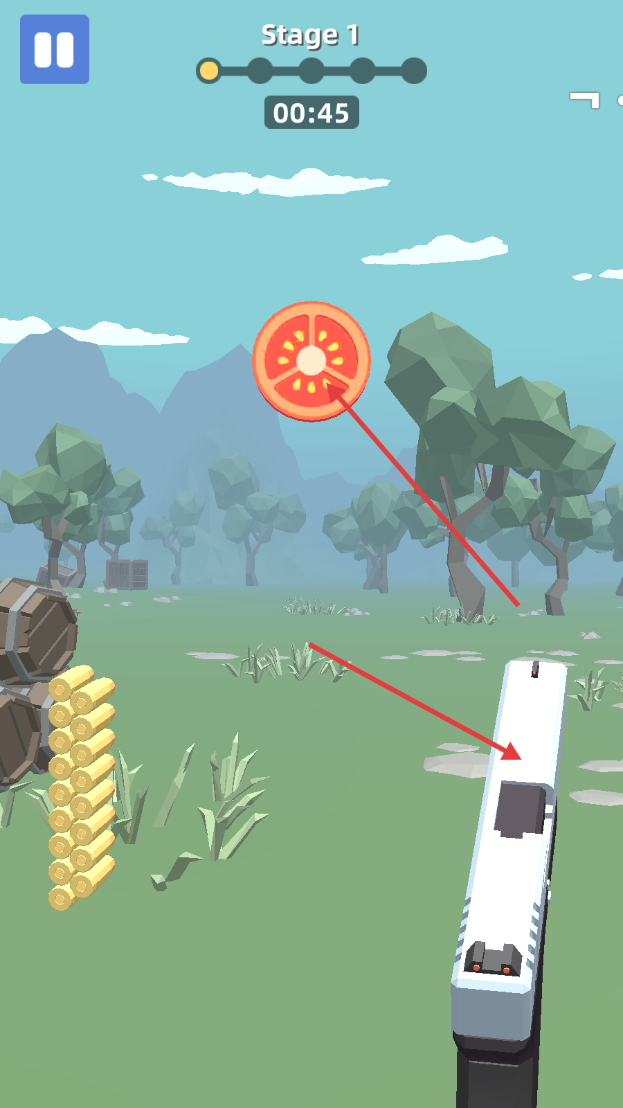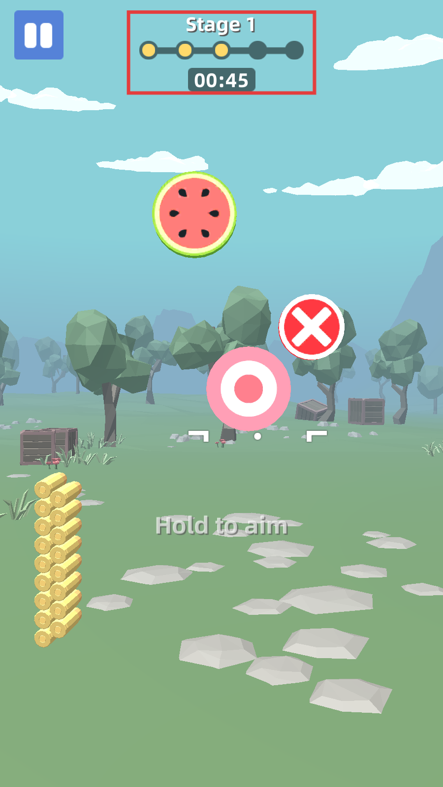 2、使用枪械射击空中的番茄西瓜等水果目标。