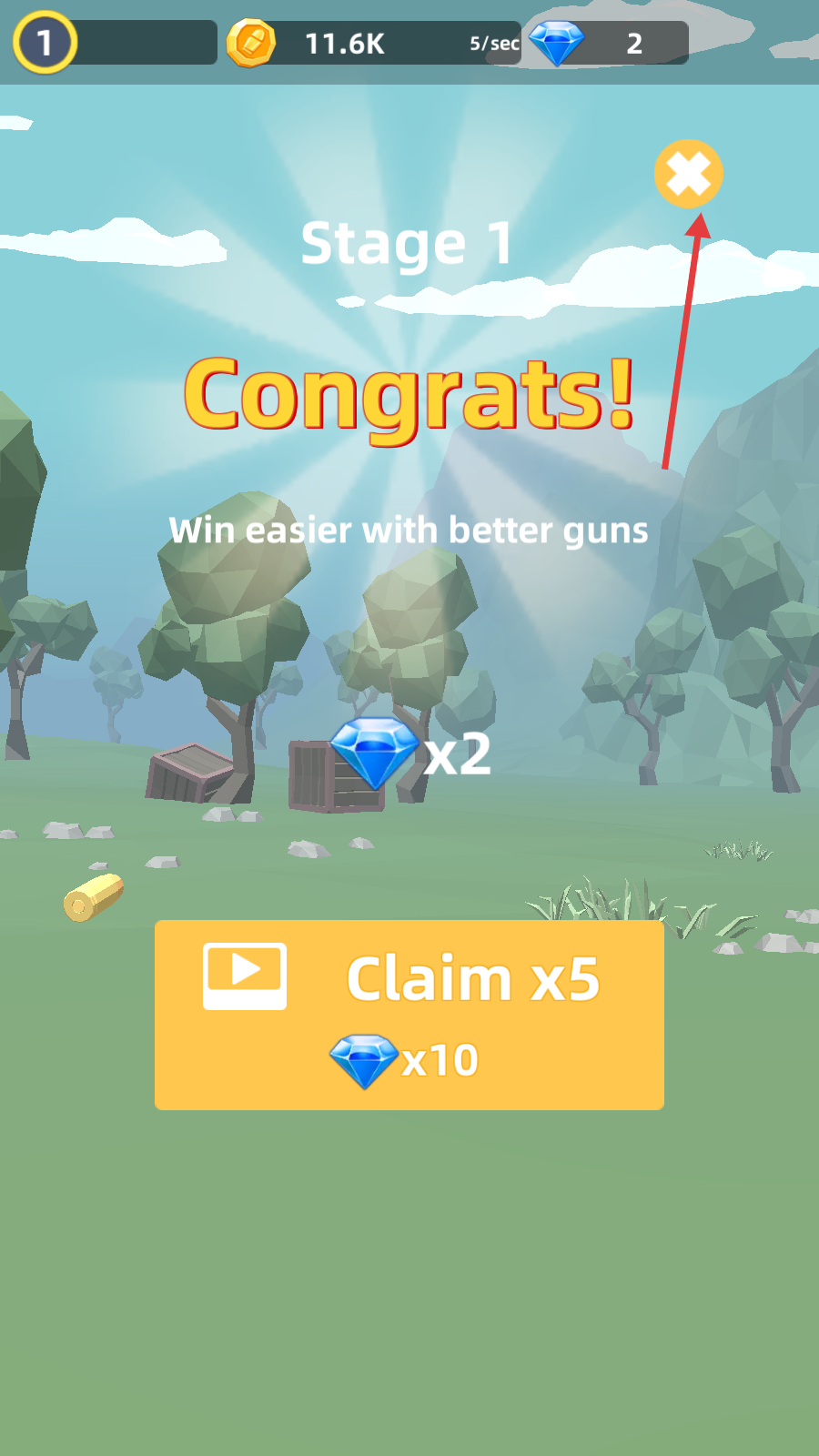 4、完成关卡后,在【Congrats!】界面获取钻石等奖励。