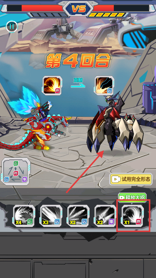 3、第【4】回合观察克制关系,适时用【X1-终】终结技能,提升对BOSS的伤害效果。