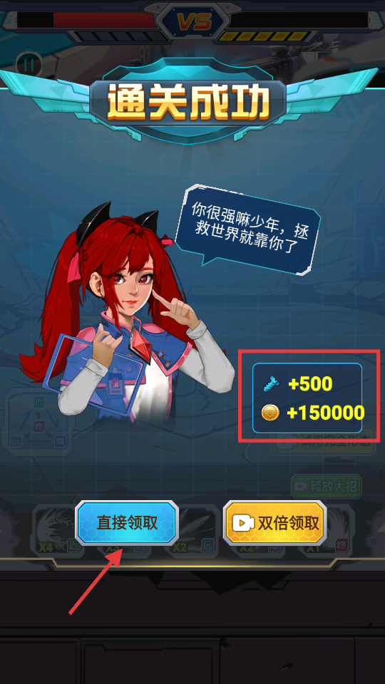 4、通关后点击【直接领取】获【500】螺丝与【150000】金币,或看广告双倍领取收益。