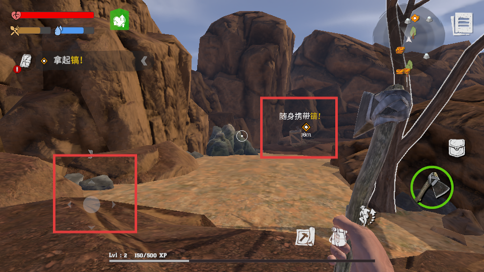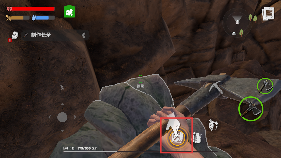 1、利用右侧滑杆移动角色,前往镐所在位置,完成【拿起镐】的任务。