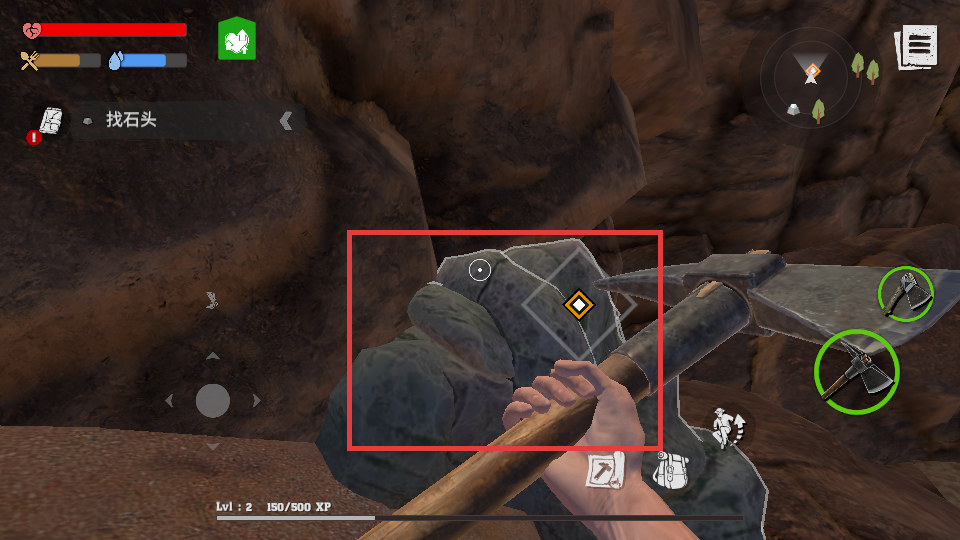 2、使用镐挖掘石头,完成【找石头】的任务,获取石头资源。