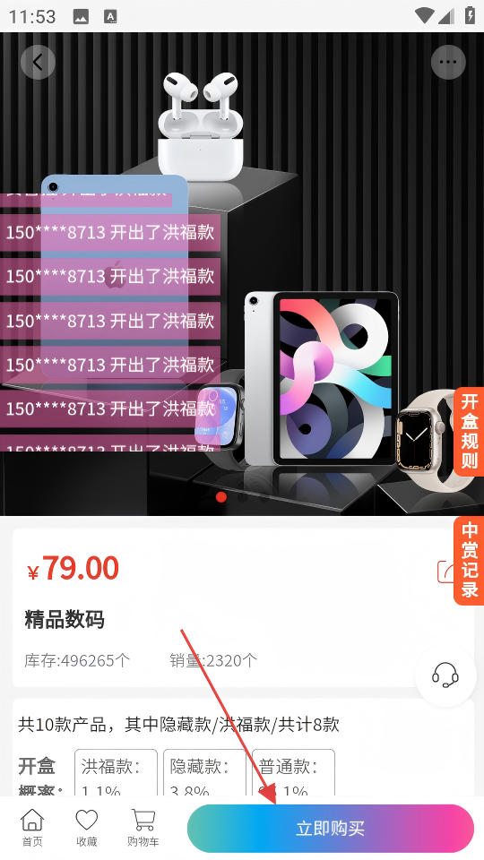 3、立即购买便捷:抽到心仪商品后支持在线立即购买,操作流程简单,无需复杂步骤,帮助用户快速锁定商品,完成交易。