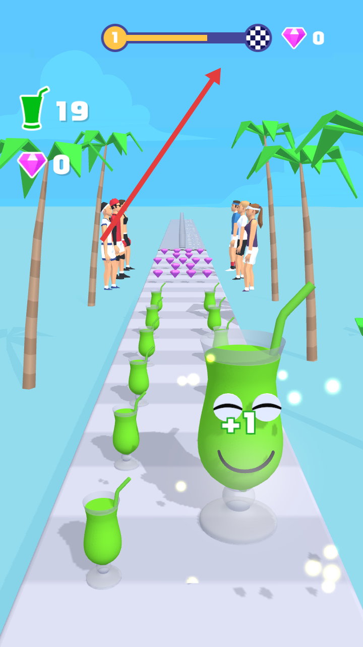 2、持续收集饮料,向终点推进,同时留意路径上的钻石资源,提升游戏收益。
