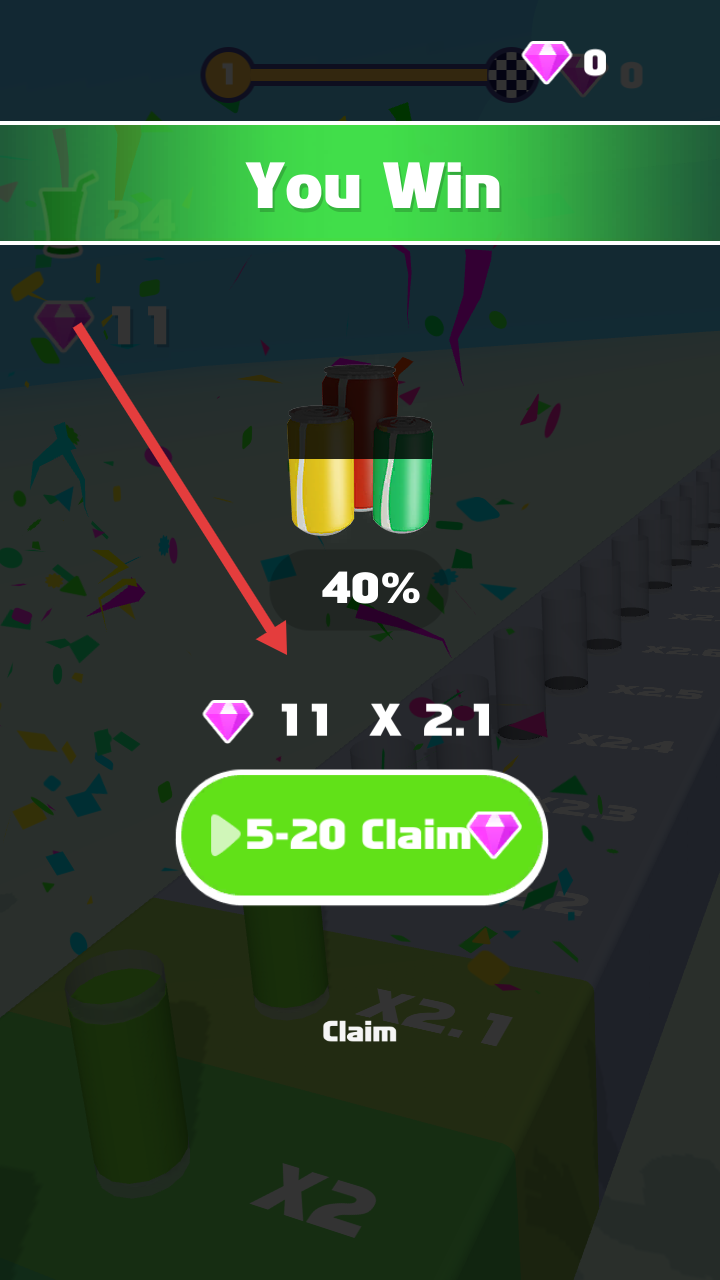 4、关卡完成后,点击Claim按钮领取钻石奖励,然后进入下一关,继续挑战并积累更多资源和分数。