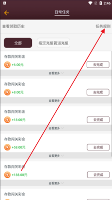 3、最后可以看到所有任务的规则,包括领取方式、存款方式、返利等等规则。