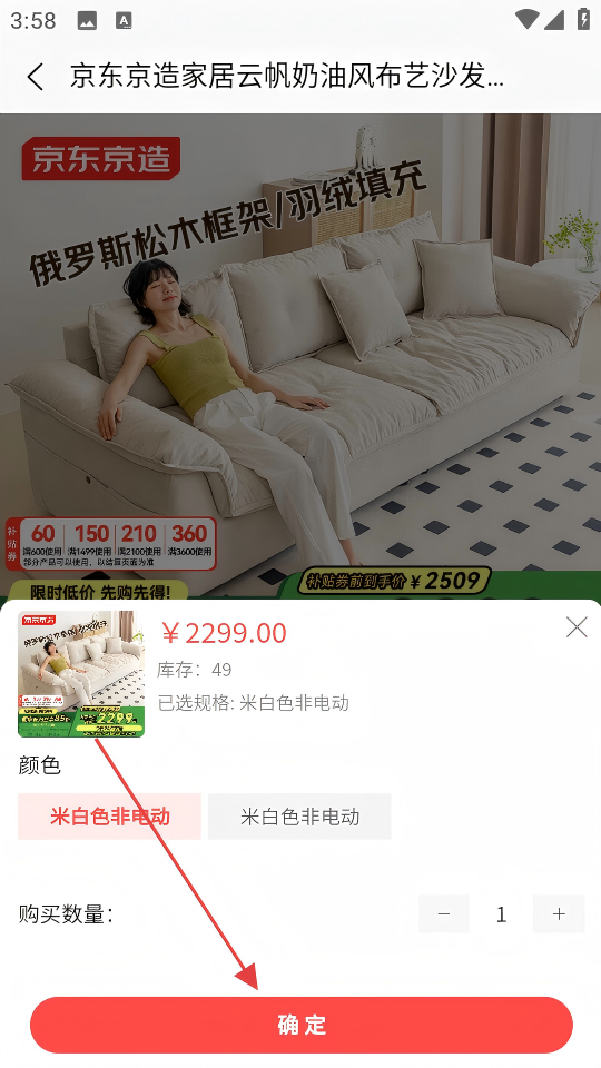 3、进入购买商品页面,选择商品颜色、购买数量,点击【确定】。