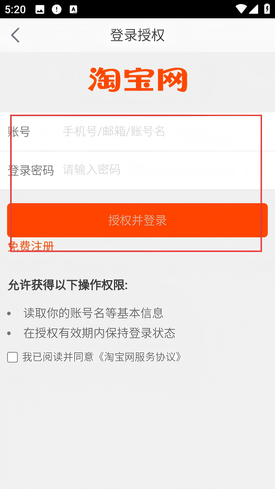 4、进入淘宝网登录授权页面,点击【授权并登录】,完成授权后即可进行后续购买操作。