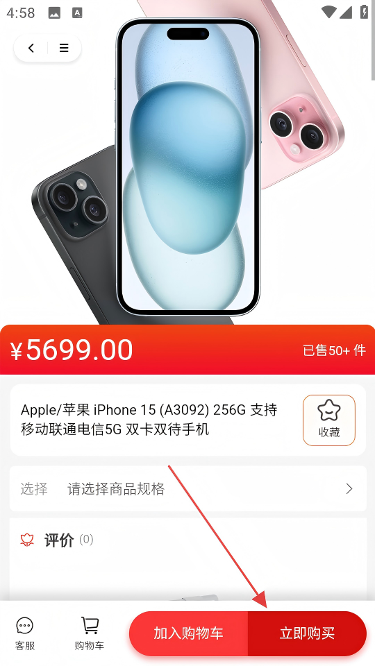 3、进入商品详情页,查看商品信息后,点击“立即购买”。