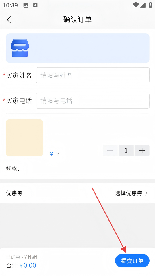 4、在确认订单页,填写买家姓名、电话,点击“提交订单”完成购买。