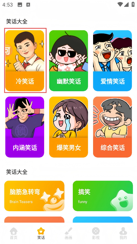 2、在笑话页面,选择笑话分类,如【冷笑话】。