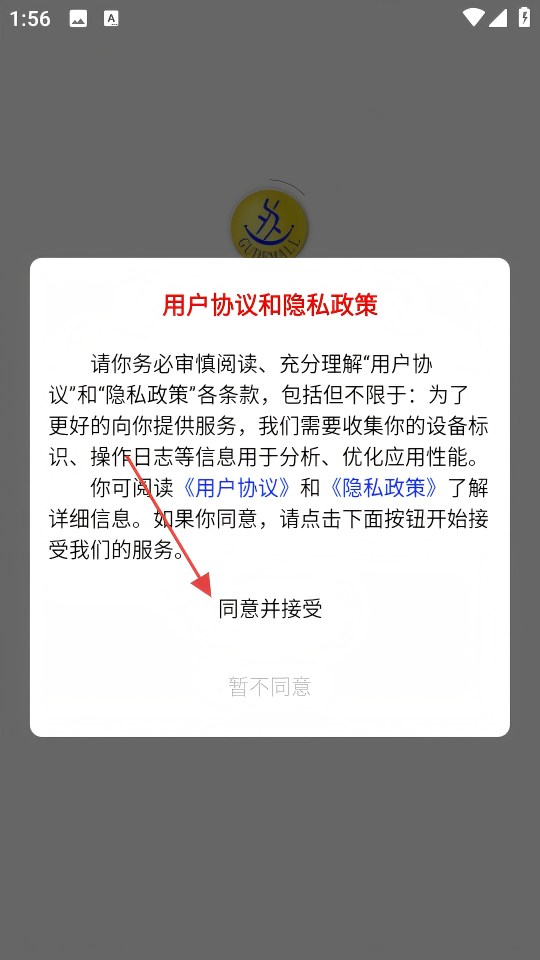 1、仔细阅读【用户协议和隐私政策】内容,点击【同意并接受】按钮以开始使用服务。