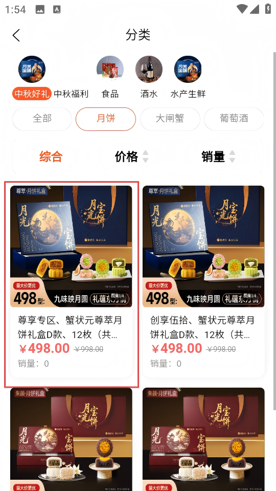 4、进入【月饼】分类后,点击心仪的月饼商品查看详情。