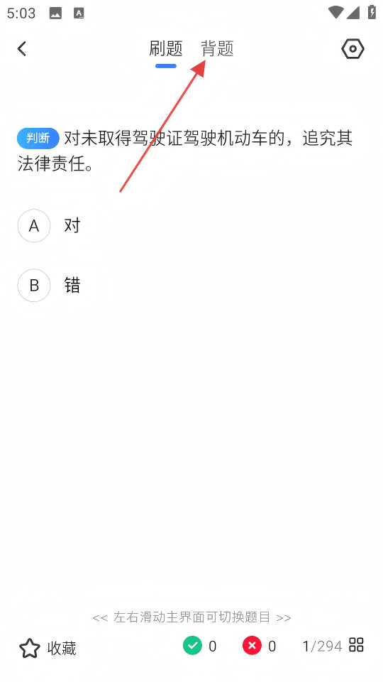 3、在题目练习界面,点击【背题】选项,切换到背题模式。
