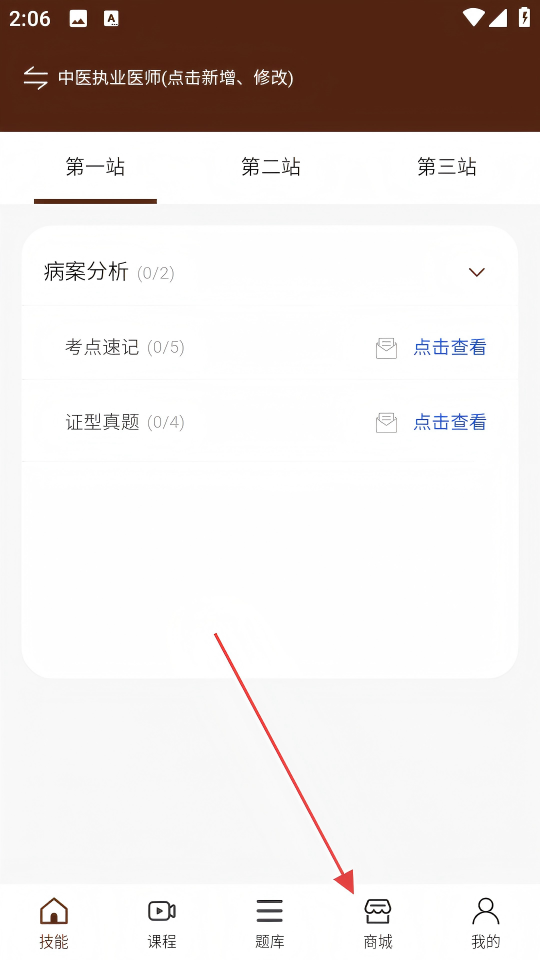 1、在APP技能页面,点击底部【商城】选项,进入商城页面。