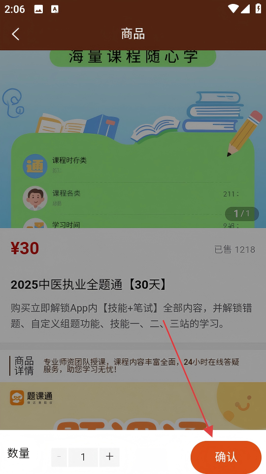 4、在购买确认窗口,点击【确认】按钮,完成课程购买操作。