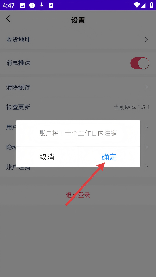 4、在弹出的【账户将于十个工作日内注销】弹窗中,点击【确定】按钮,完成账户注销。
